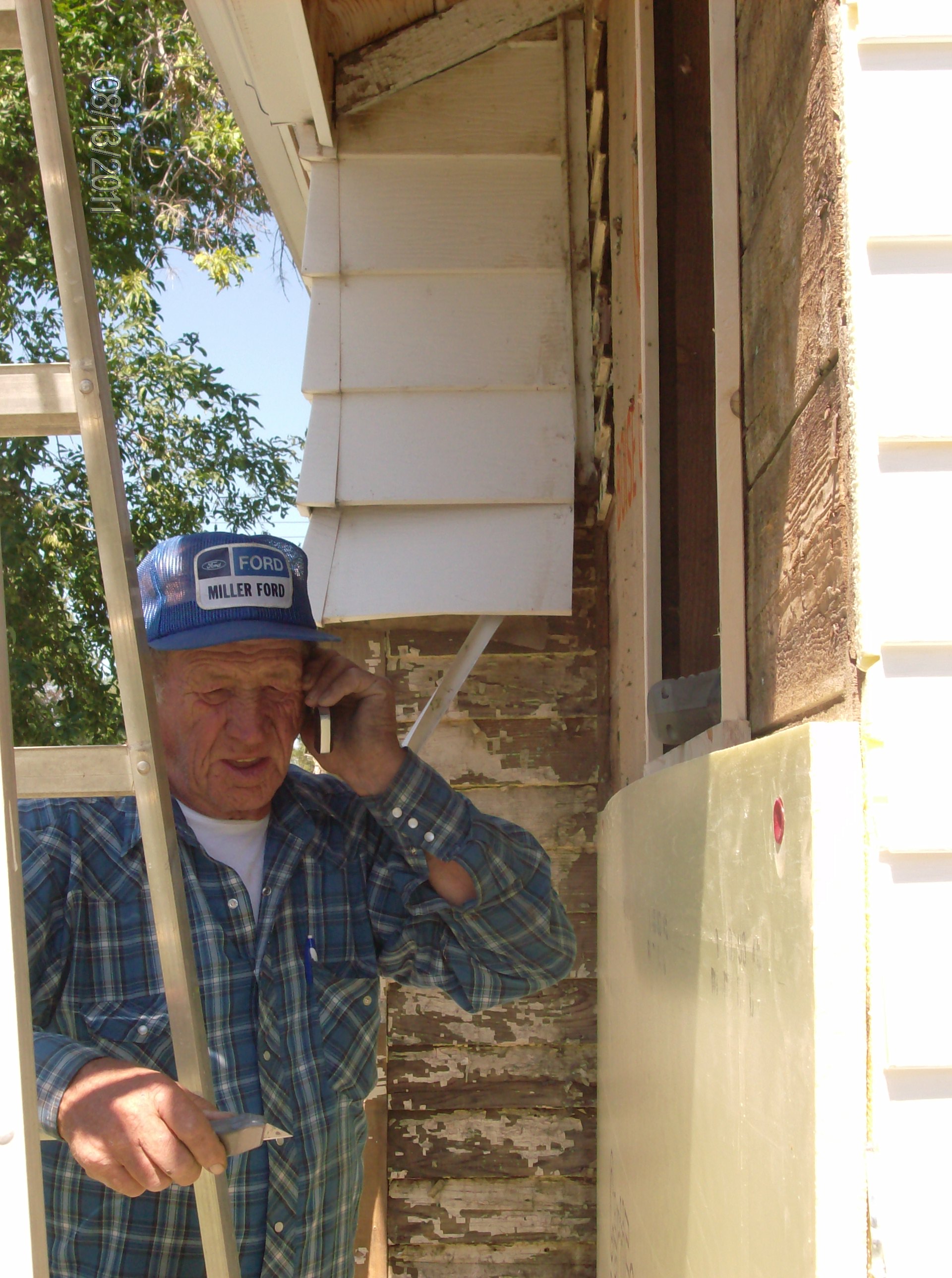 Yeah, I’ve been working on my parents’ house again. This time, we’re putting on a rock-type finish and new siding on the south and west sides…as well as six new windows.